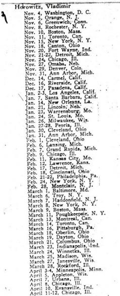 A listing of Horowitz's concerts as a professional pianist